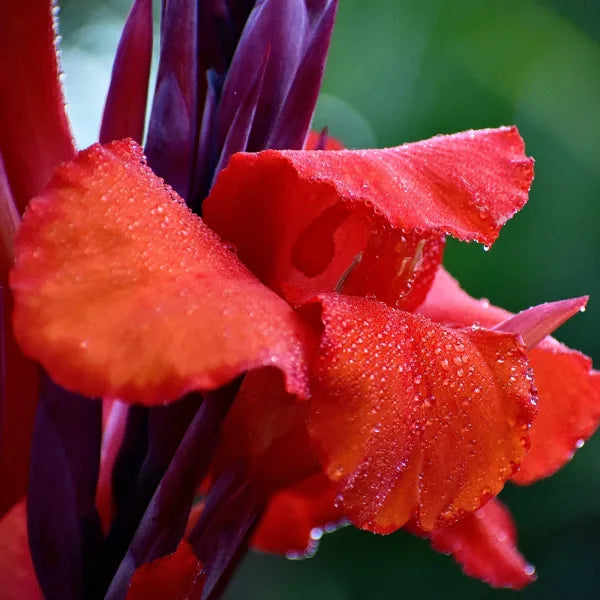 Canna orchioides (Show Off Intrigue) is a striking perennial with dark red tropical foliage and large, vibrant red flowers. Its dramatic colour and upright growth habit make it a standout feature in borders, containers, or tropical-themed gardens