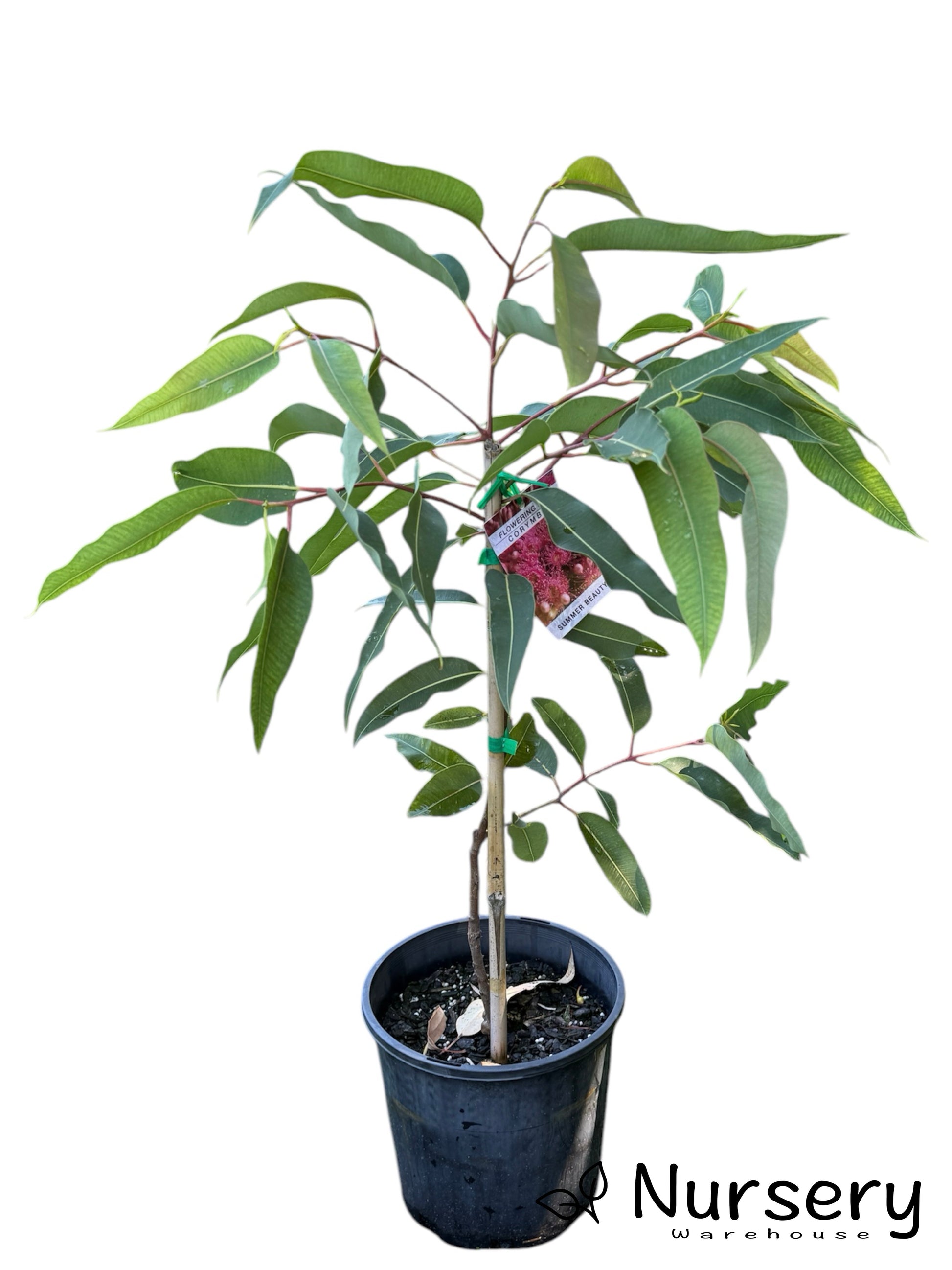 Corymbia Summer Beauty (Pink-Flowered Gum) is a striking ornamental tree admired for its clusters of soft pink to deep rose flowers that bloom from late spring to summer. The lush green, ovate foliage and smooth, greyish bark add texture and elegance to any landscape. Its vibrant flowers attract birds and pollinators, making it a lively addition to gardens or streetscapes.