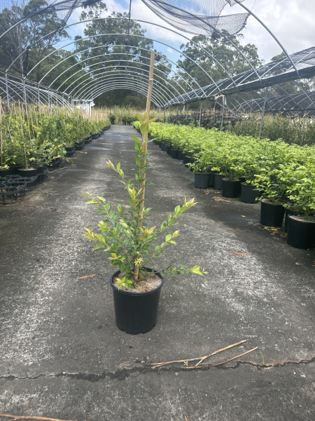 Backhousia Myrtifolia (Grey Myrtle, Cinnamon Myrtle) is a beautiful Australian native tree or large shrub, known for its aromatic, cinnamon-scented leaves and masses of creamy-white flowers. Its dense, bushy foliage makes it an excellent choice for hedging, screening, or as a feature plant in native and ornamental gardens. The fragrant leaves can also be used in cooking, making it a valuable bush tucker plant.