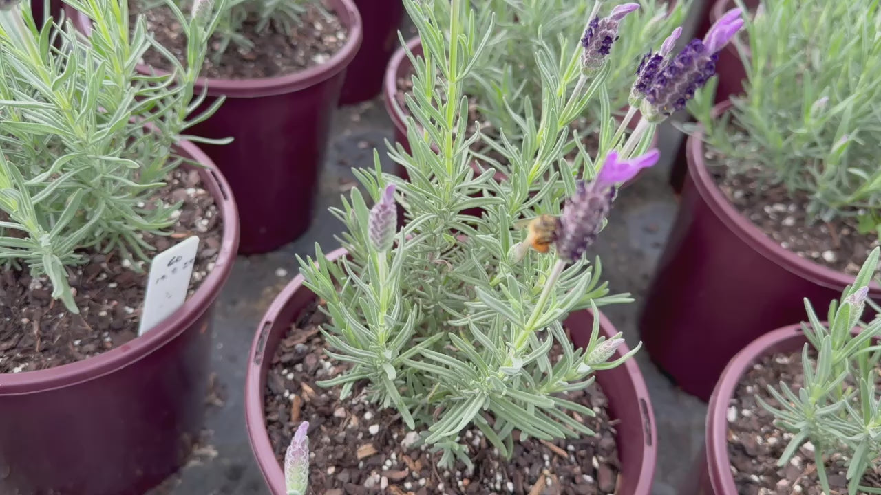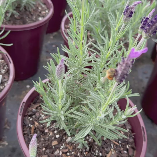 Lavandula stoechas 'Avonview' (Lavender Avonview) transforms your garden into a sensory paradise with its delightful fragrance and vibrant purple butterfly-shaped blooms. This compact, evergreen shrub features silvery-green foliage that adds texture and fragrance to any space. Thriving in full sun or partial shade, Lavender Avonview is perfectly suited for hot, dry climates, making it an ideal choice for creating stunning hedges, borders, or container displays. Its aromatic flowers attract pollinators, adding beauty and wildlife interest to your garden. Whether used as a feature plant or for creating a fragrant hedge, this majestic lavender variety is sure to enhance your landscape.