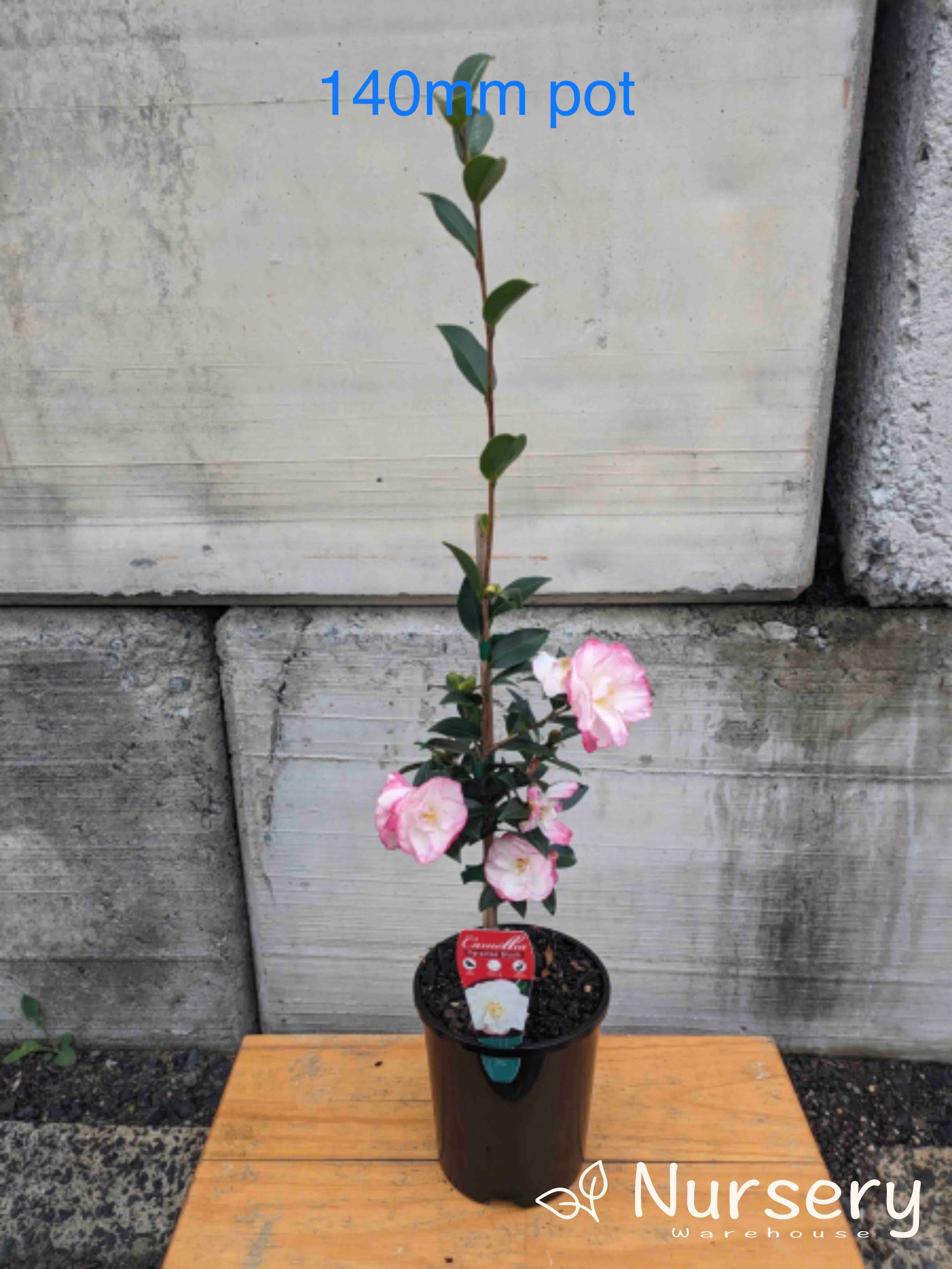 Camellia Sasanqua 'Paradise Blush' (Paradise Blush Camellia) is an elegant evergreen shrub, celebrated for its delicate white flowers with a soft pink blush. Blooming from early autumn to late winter, the semi-double flowers emerge from deep pink buds, creating a long-lasting and eye-catching display. Its glossy, dark green foliage adds year-round appeal, making it a popular choice for formal hedging, screening, or as a feature plant in gardens and containers.