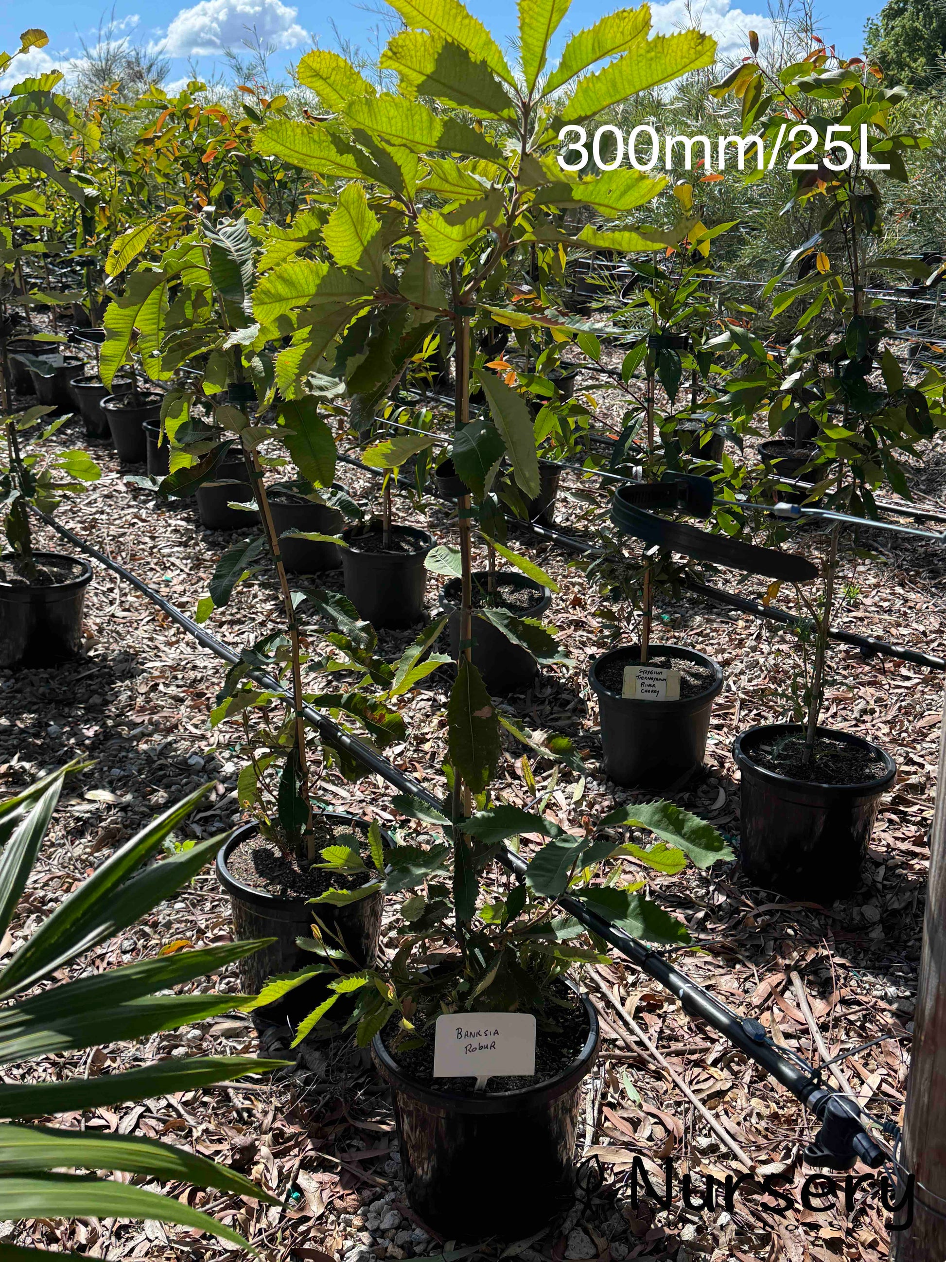 Banksia Robur (Swamp Banksia) is a distinctive Australian native plant known for its large, robust appearance and striking green-grey foliage. This hardy shrub produces tall, cylindrical flowers that range from pale yellow to cream, adding a unique texture and colour to any garden. Its dense growth habit and ability to thrive in wet or marshy conditions make it ideal for coastal gardens, ponds, or gardens with poor drainage. The Swamp Banksia’s attractive form and natural beauty provide year-round interest, especially in low-lying areas.