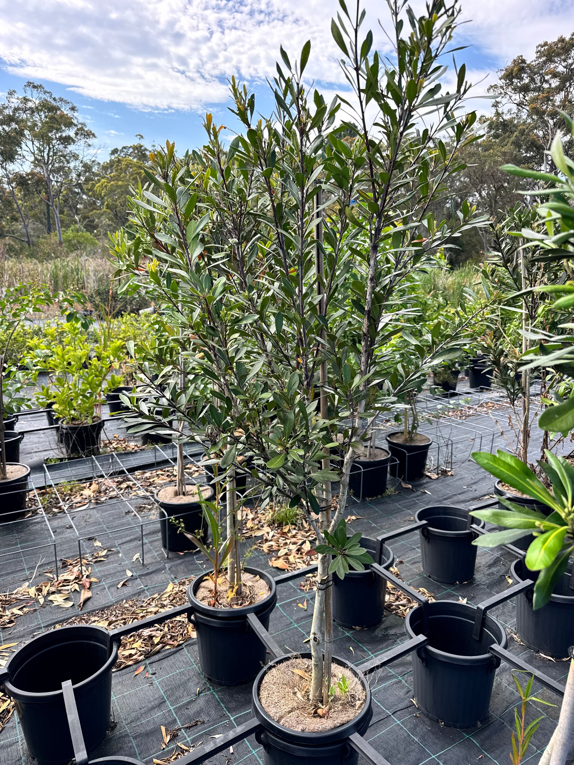Tristaniopsis Laurina (Water Gum) is a stunning evergreen tree known for its dense, glossy green foliage and attractive mottled bark. In summer, it produces clusters of fragrant yellow flowers, which attract bees and butterflies. This hardy Australian native is well-suited for street planting, parks, and home gardens, where it provides excellent shade and year-round interest.